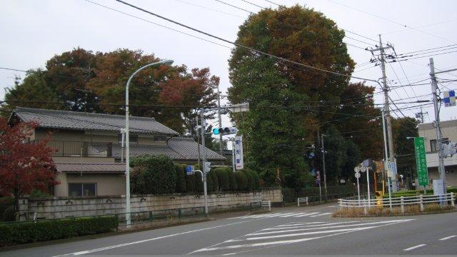 小平上宿交差点で道路は二手に分かれますが、そのまま直進します。左手は立川通りになっていて、直ぐ先の旧家の裏庭には、樹齢300年以上で樹高35mにも及ぶ大欅が聳えています。青梅街道沿いには天を突く巨木が多いですね。