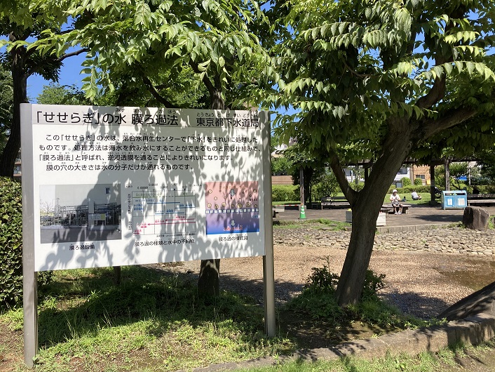 小滝橋で早稲田通りを越えた先に落合中央公園があります。東京都下水道局管轄の落合水再生センターの上部に作られた人工地盤の上に建設され、野球場やテニスコートも附属する広大な公園施設です。敷地の一角には、せせらぎの里という施設もあります。