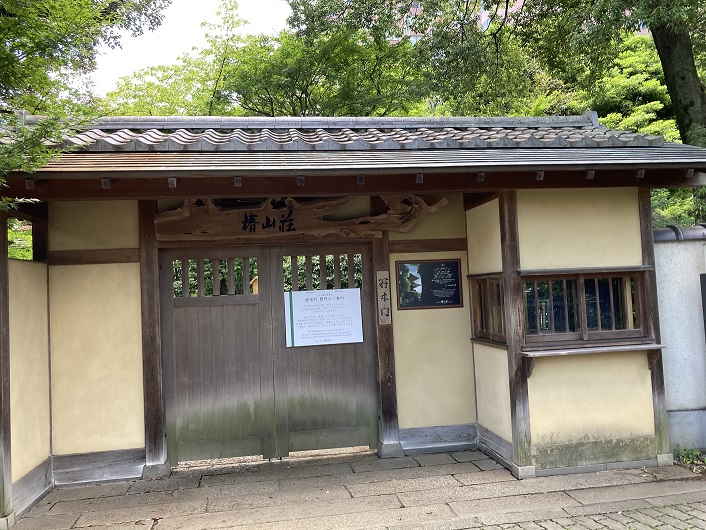 野間記念館と隣接するようにして椿山荘の裏木戸があります。殆どのお客さんは目白通りに面した正面入口から入るのでしょうけど、裏木戸から入るのも風情がありますね。