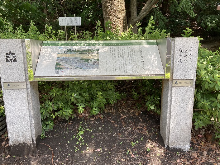椿山荘の先に、神田川流域の中では最大規模と思われる江戸川公園があります。公園内の大滝橋付近に神田上水取入口の跡があります。江戸時代に神田上水への取水堰が設けられ、大滝のごとく神田川は流れていたといいます。この取水堰が後の文京区関口というこの界隈の地名となっています。 神田上水はここの堰で取水され、概ね神田川(江戸川)と並行して旧水戸藩後楽園内を地形等高線に沿って水道橋の掛樋に向かっていました。