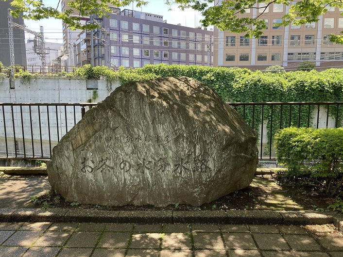 更に、「御茶ノ水分水路」と彫られた巨岩の碑もありました。河川沿いの高度利用が進み、河道拡幅による河道整備が困難であった神田川の中流部において、早期の治水安全度向上を図ることを目的とした「神田川分水路事業」の一環で、水道橋分水路・江戸川橋分水路・高田馬場分水路と共に造られたお茶の水分水路を記念する石碑です。