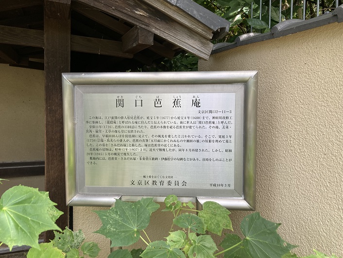 胸突坂の中腹に芭蕉庵があります。俳人の芭蕉ゆかりの庵がなんでここに?と思いましたが、松尾芭蕉は、この付近に3年ほど住んで神田上水の工事に関わったとされています。芭蕉は俳人だけではなかったんですね。