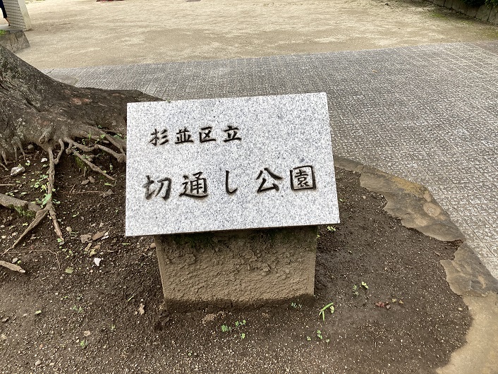 井草川の源とされる切通し公園は、早稲田通りが青梅街道に合流する井草八幡前交差点の直ぐ手前にあります。「切通し公園」とは妙な名前ですが、これにはかっての井草川の主要な2つの水源が関係しているものと思われます。井草川の元々の水源は、武蔵野礫層を流れる伏流水が地表に姿を現した湧水でした。長い時を経て武蔵野ロームが堆積しますが、湧水や流れのあるところには積もらず、今日の谷地形が形成されて井草川の水路が定まりました。宝永4年(1707年)、下井草村名主半兵衛らの尽力により、千川上水(用水)を分水して青梅街道沿いに六ヶ村分水が開削されました。その水を取水口(切り通し口)から取り入れ、元々の湧水と一緒に流したのが井草川です。切通しのあった地点に公園が作られたので、「切通し公園」という名前が付けられたということです。