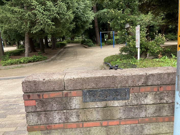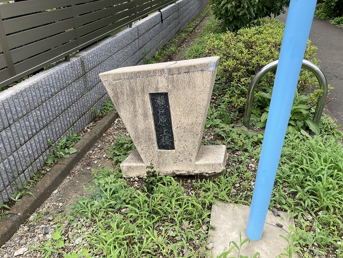 井草川には道路との交差地点に橋が架けられていましたが、緑道となった今でも当時の橋跡に欄干を模した旧橋名を示すモニュメントが置かれています。井草川の遺構としてこれからも大事に保存しておいて欲しいですね。