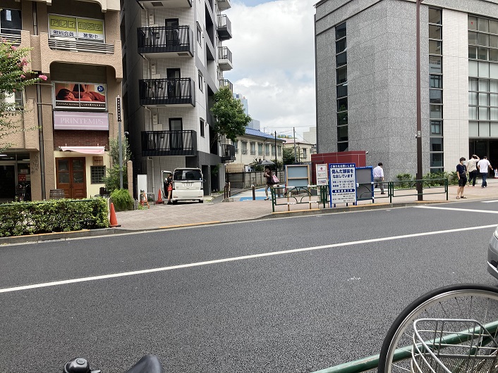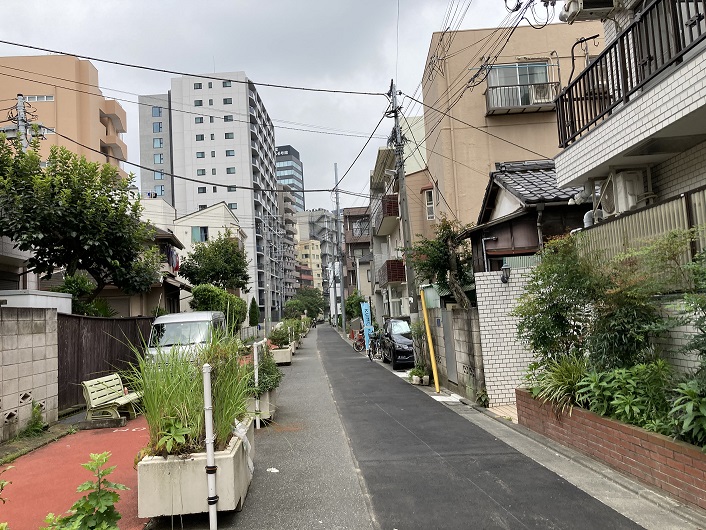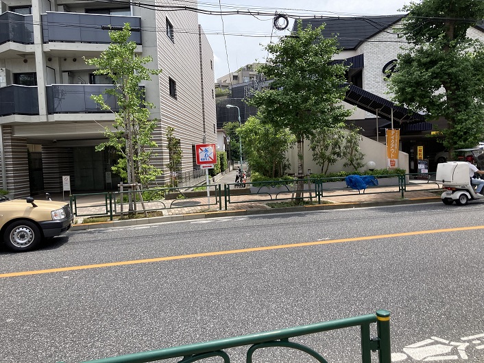暗渠道は方南通りと少しずれて進みながら、都営地下鉄西新宿五丁目駅近くで方南通りと交差します。