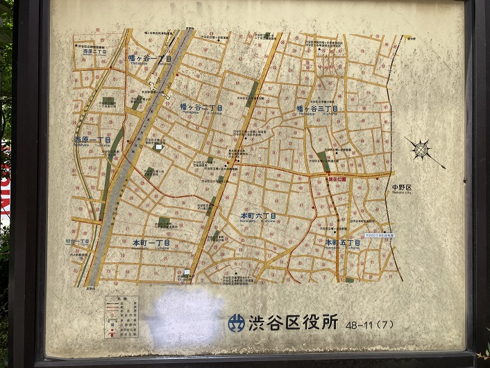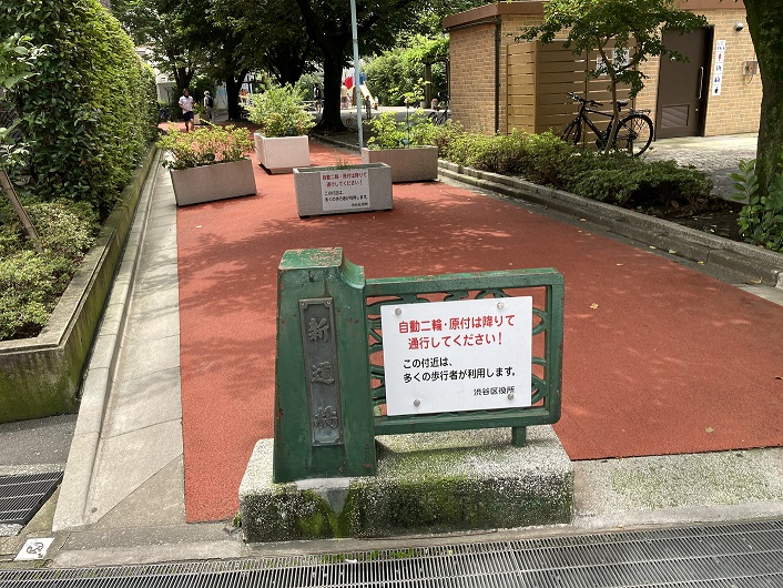 その先で新道公園から延びてくる遊歩道に入ります。ここから終点の神田川合流地点までは遊歩道が切れ目なく続いているのでルートを間違えることはありません。新道公園は、かって和泉川に架けられていた新道橋に因んで名付けられました。公園の地下には洪水対策として遊水施設が造られているとのことです。公園にあった地図には暗渠道のことを「神田川支流遊歩道」と表示してありました。確かに、渋谷区の表記方法に則っていますね。