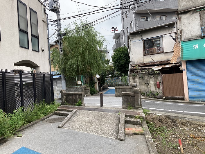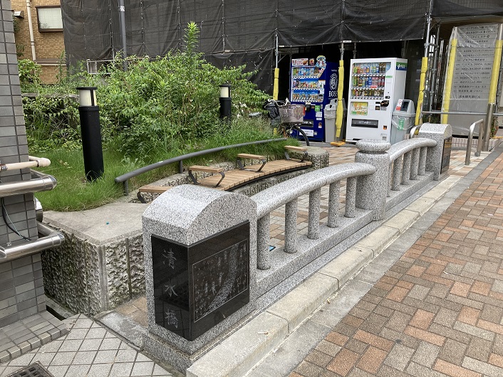 山手通りと交差する清水橋交差点には真新しい石造りの欄干が設置されています。山手通りが拡張されたので昔の欄干は撤去され、新たにモニュメント的に置かれているのでしょう。