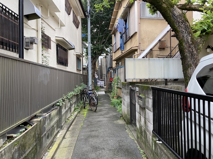一応、和泉川の源流を私なりに特定しましたので、これから川歩きを開始します。路地の突き当たりから反転し、住宅地の路地を進みます。