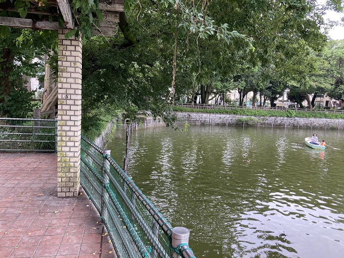 池の南端に排水口が見えますが、ここから立会川に水が流れ出ているのでしょう。