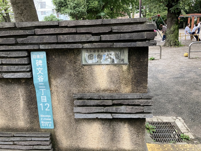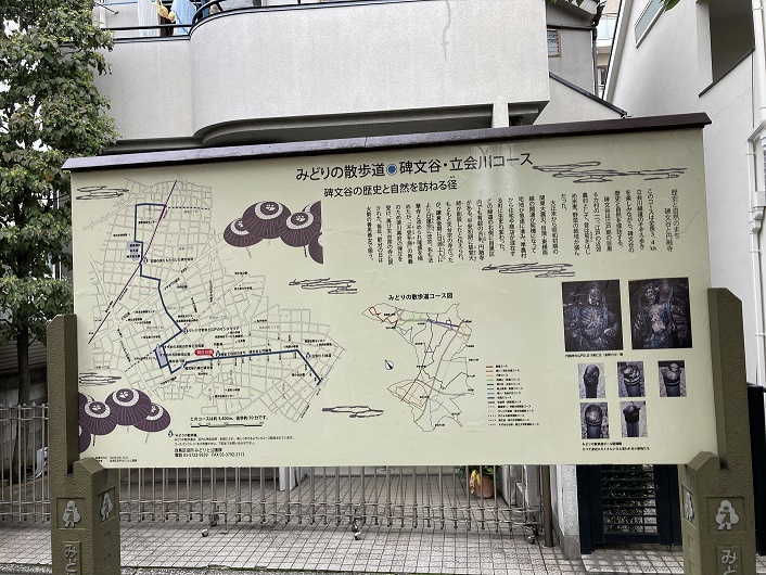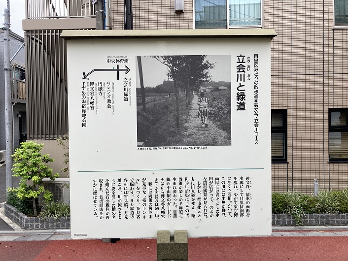 「目黒区みどりの散歩道」の碑文谷・立会川コースの案内板には次のように記されています。
