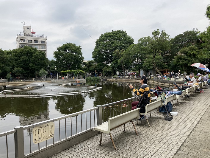 釣りマニアで賑わうこの公園は、広さ約5,800u。その三割を大きな池が占める。昔は自然の湧水池だったが、やがて碑文谷村共有の水田灌漑用の貯水池に。その後、東京市に寄付され、昭和10年12月、新しい公園に生まれ変わった。戦後の27年には目黒区が釣堀公園として整備し直し、区民に開放。時折、フナやコイなどが放流され、太公望が糸を垂れる。池の端の弁天様の祠は、灌漑水源の守護神として村人達が建立したものだ。