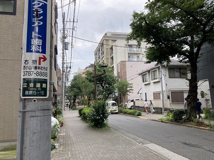 西小山駅の手前で緑道は終わり、その先は一般道の立会道路になっています。一般道とはいっても、駅の周辺は桜並木になっていて歩きやすいですね。左手に南公園があります。どうということもない普通の公園ですが、この地下には小学校の25mプール50杯分もの雨水を貯めることができる調整池が設置されているそうです。1時間に50mmを超える激しい雨が降った際に、下水道から水があふれ出るのを防ぐために、流れ込んできた水を一時的に調整池に貯める施設です。この施設のおかげで、この地域ではここ20年間大雨による浸水被害は出ていないのだそうです。