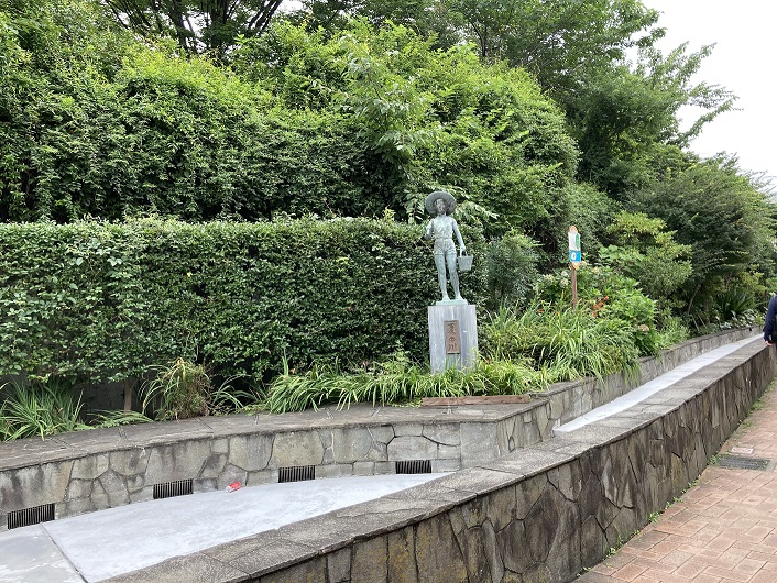 緑道のところどころには、休息のための小さな広場があり、川をモチーフにした像やモニュメントが設置されています。昔は緑道そばに巨大な東芝病院がありましたが、2018年に事業移管されて東京品川病院に変わったのだそうです。東芝も大変な時期でしたからね。