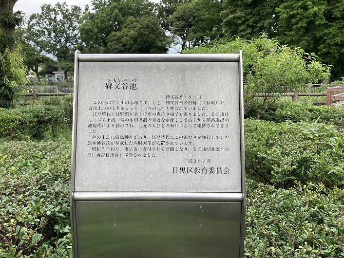 公園の中に碑文谷池の案内板が立っていました。