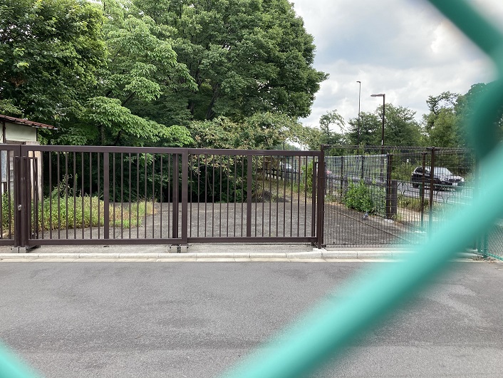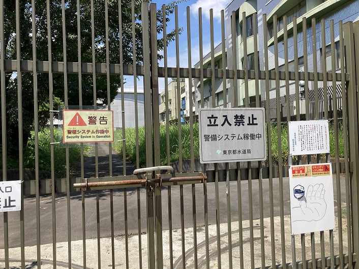 歩道橋を渡って甲州街道の反対側に降りますと、歩道から右手に延びる緑道らしき道が見えます。その先は和田堀給水所の敷地になっていて、厳重に立ち入りが禁じられています。