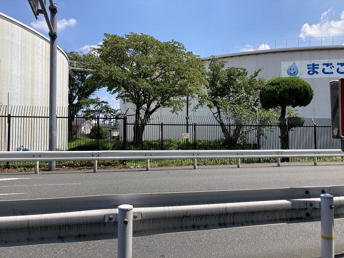 玉川上水公園は、甲州街道(国道20号線)と中央自動車道に繋がる首都高4号新宿線が分岐する地点で終わります。そこから先はどうなっているのかなぁと何か手がかりがないか探します。ふと、高速道路の下のフェンスの中を見ますと、「水道用地につき立ち入り禁止」の立て札が立っています。とすると、玉川上水の流路の上に高速道路を造ったようです。東京オリンピックの時に、高速道路用地の買収を短期間で終えるために、都内の河川の上に建設したのと同じ方式なのでしょう。つまり、この先は高速道路に沿って歩けばいいわけです。