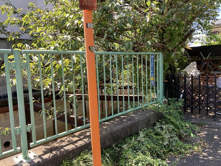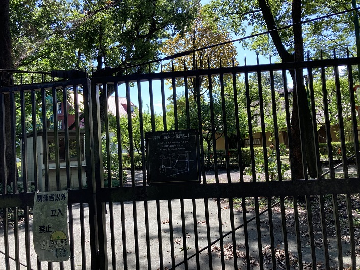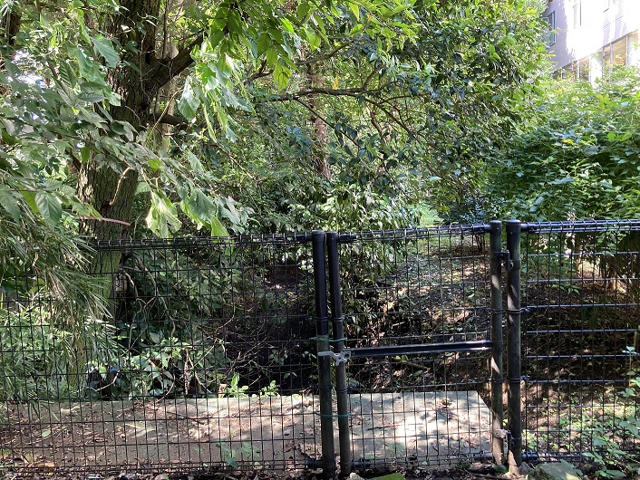 フェンスの右手に行きますと、そこも柵で閉じられています。表札には嘉悦大学と書かれています。この大学の敷地内からわき出た湧水も石神井川の水源になっているとかで、開口部で流れていた水は嘉悦大学から流れ出たものかもしれません。何はともあれ、一応石神井川の源が確かめられて満足です。