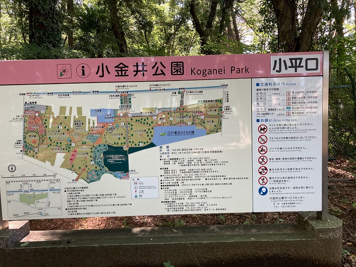 それにしても小金井カントリー倶楽部の敷地は広いですね。ようやくフェンスが途切れた先に小金井公園の入口がありました。小平口とのことです。