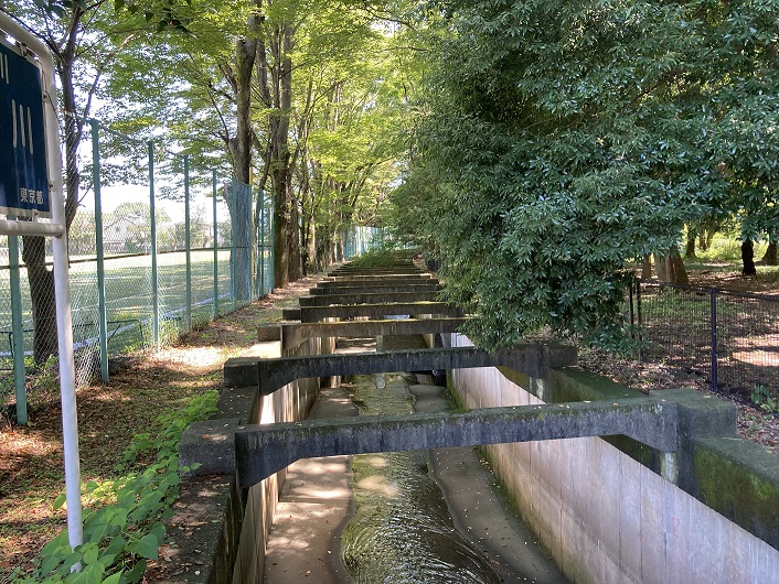 ようやっと小金井公園の小平口の手前まで戻ってきました。地図の通り、石神井川は小金井公園から鈴木街道に向って真っ直ぐに流れています。