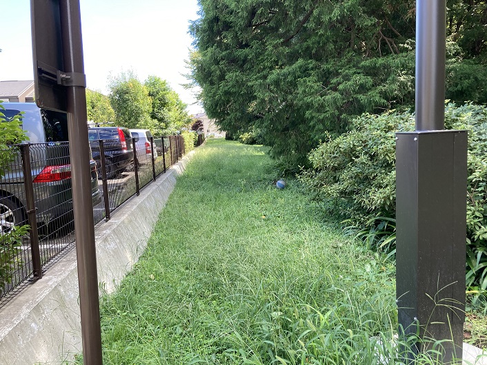 下り坂はフェンスで囲まれた広大なゴルフ場に突き当たります。T字路になっていますので、右(南)に行くか左(北)に行くか迷います。石神井川は小金井公園の北側を流れているとのことですので、左に進みます。