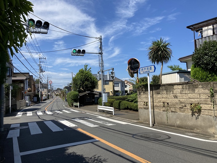 随分歩いて、やっと小金井公園の方向に向う道路に出ました。道幅は狭いですけど、路線バスも通っています。後で知ったのですが、この道路は鈴木街道というのだそうです。小学校の名前も道路の名前も町の名前も鈴木だらけで、ここに鈴木さんが住んでいたらややこしいですね。