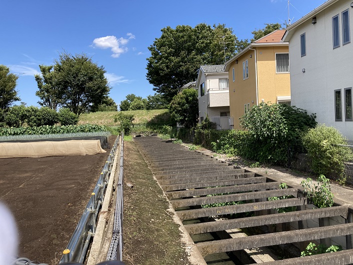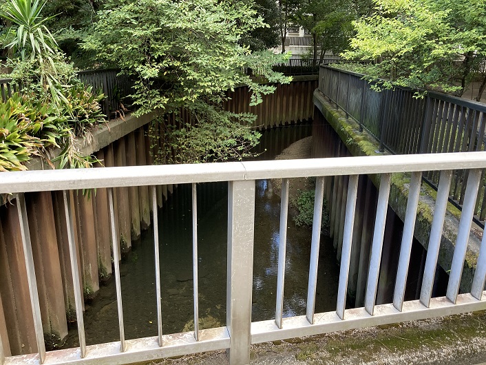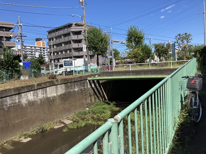 開口部には公園北橋が架かっていて、反対側を見ますと暗渠らしきコンクリートの蓋が続いています。