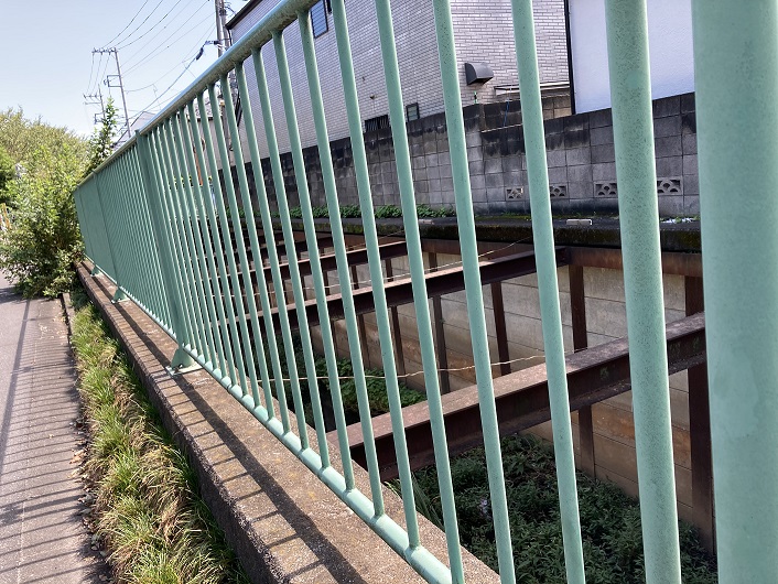 ようやっとまともな側道が現れました。川の両側に立てられた防護柵もちょっとお洒落な感じです。