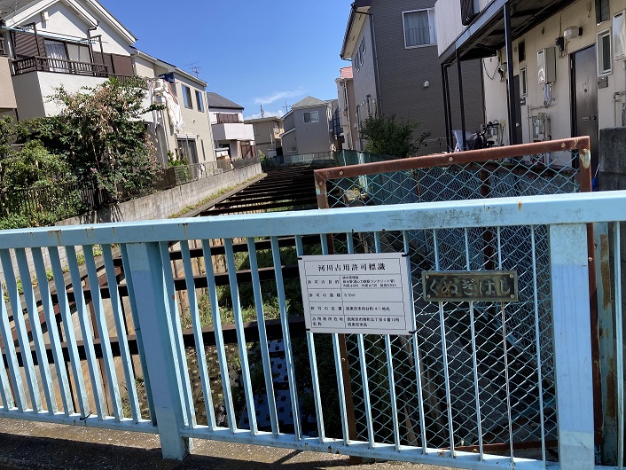 石神井川は西武柳沢駅の南で青梅街道と交差します。その先暫く側道はなくなり、青梅街道と平行して流れます。