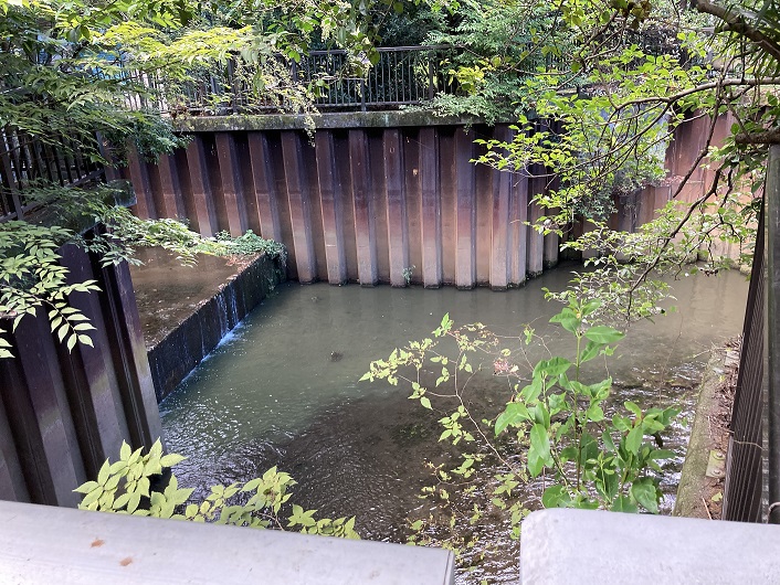 湖の北端に行って謎が解けました。石神井川は湖で行き止まりになっているのではなく、北端にある水門から水が流れ出ているのです。水門の先は再び石神井川になります。