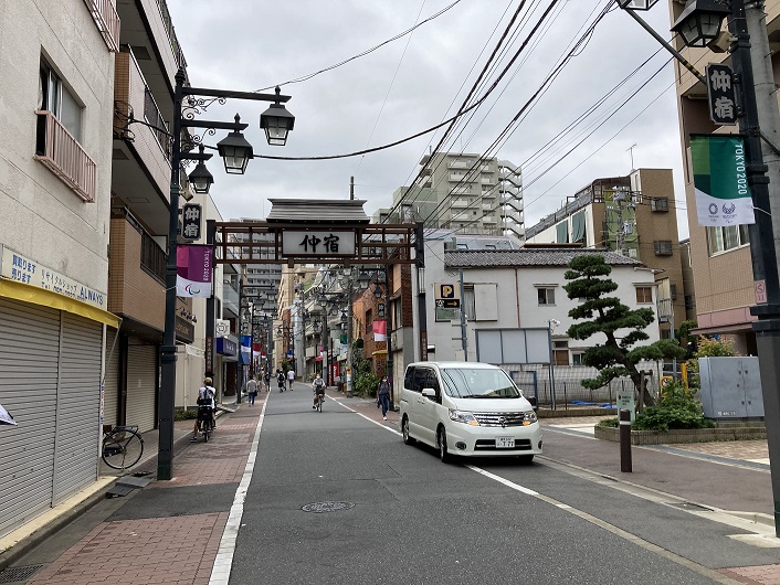 中山道を越えた先に木の欄干の橋が架かっています。これが板橋で、仲宿から続く旧中山道が通っています。