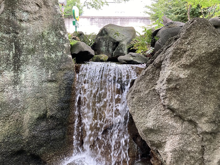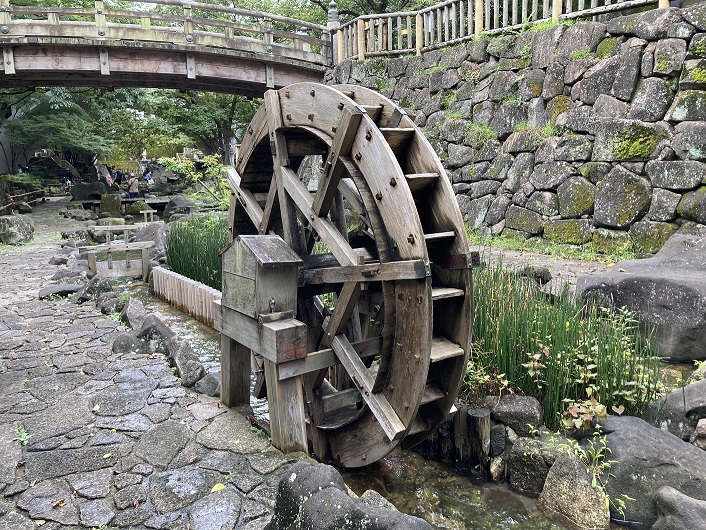公園には人工の滝が造られ、その流れの先には水車がありました。水量が少なくて回ってはいませんでしたが。