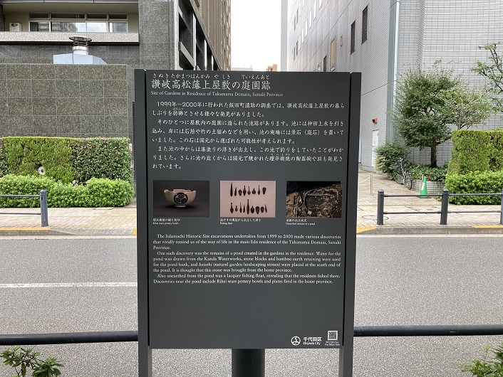 江戸時代、この辺りには高松藩の上屋敷があったそうです。高松藩は水戸光圀公の長男の松平頼常が藩主を務めたことがあり、後に平賀源内も仕えた藩でもあります。蛇足ですが、上屋敷は主に藩主とその妻子などが居住し、中屋敷は主に隠居や世継ぎなどの住居用、下屋敷は国元からの荷を揚げるため主に水辺につくられた蔵屋敷と区別されるのだそうです。
