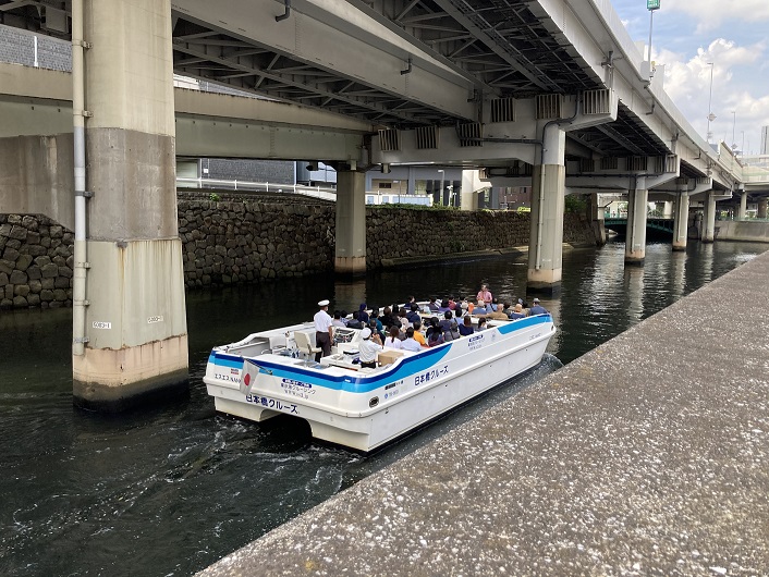 ふと川面を見ると、ちょうど日本橋クルーズのボートが航行していました。4連休の最後とあって、ボートの座席は殆ど埋まっていました。コロナ渦で長いこと続いた外出自粛の反動なのでしょうか?