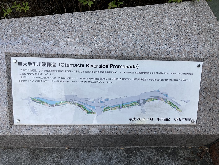ここにも大手町川端緑道の案内板が立っていました。再開発事業の全体にUR都市機構がかかわっていたんですね。