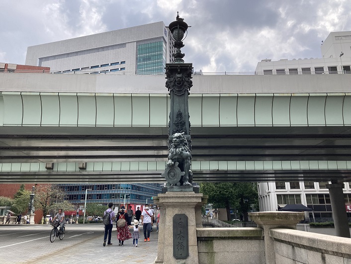 日本橋にやってきました。今年のNHKの大河ドラマは「麒麟がくる」ですが、日本橋の麒麟の像は橋のシンボルになっています。日本の道路の起点となる日本橋から飛び立つというイメージから、それまでの麒麟の作品には見られなかった羽を付けることになりましたが、翼と背びれとを検討した結果、羽が生えたような形の背びれを採用することになりました・・・とのことです。麒麟は動物園で見るキリンだとばかり思っていたのですが、本当は中国の神話に現れる伝説上の動物(瑞獣)だったんですね。大河ドラマで室町時代末期に生きた明智光秀とか足利義輝がなんでアフリカに生息するキリンを知っていたのか不思議に思っていました。泰平の世に現れる伝説上の動物のことを麒麟と言っていたんですね。救世主のように言っていた意味が初めて分かりました。私と同じような疑問を持っている人も沢山いるのではないかと思って、恥ずかしながら書き添えます。