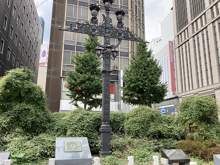 日本橋は江戸時代に五街道の起点として定められました。元標の広場には日本国道路元標の碑が置かれています。