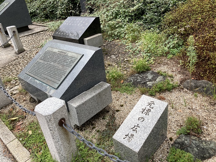 案内板を読まなければ、ただのベンチにしか見えませんが、そんな歴史があったんですか。更に、庭園跡の案内板も立っていました。