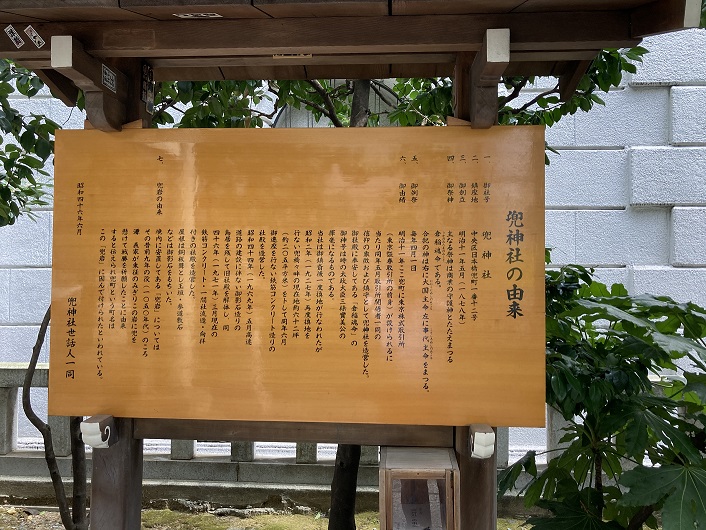 湊橋から隅田川との合流地点に向う途中に赤い鳥居の小さな神社があります。案内板には次のように書かれていました。