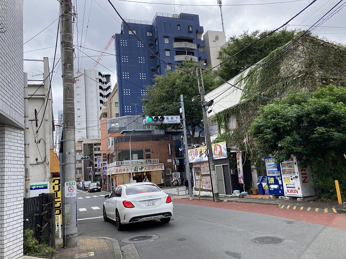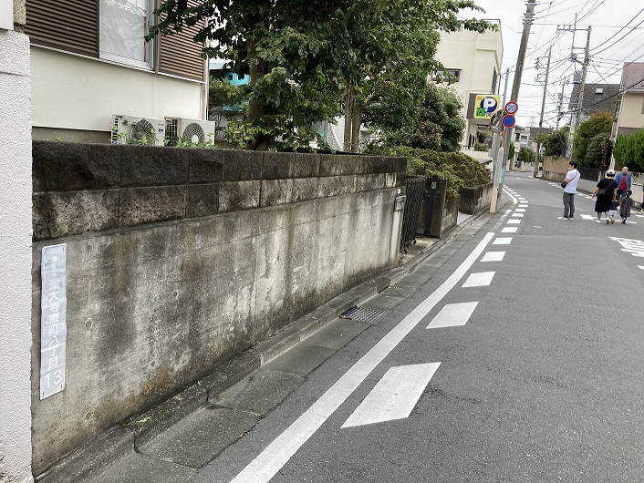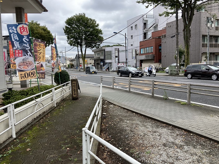 遊歩道は滝坂下交差点で甲州街道にぶつかる直前で左斜め方向に向きを変えます。華屋与兵衛の脇を通って甲州街道に出ますが、その先はどこに繋がっているのか見当がつきません。
