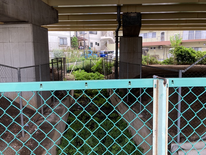 この辺りにはまだまだ農地が多く残っていて、中仙川は住宅や農地の間を縫うように流れています。川の両岸は草ボウボウでとても近づけません。