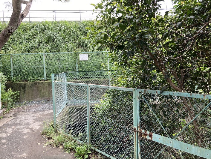 入間町に入っても入間川の遊歩道や側道はありません。おまけに、この辺りは起伏が激しくて路地巡りも足が疲れます。ようやっと野川に架かる小足立橋の袂にやってきました。入間川と野川の合流点はどこかと反対側に渡って探しますと、工事中の場所の真ん中に大きな出口が見えました。先日野川を歩いた際に入間川の出口だと誤認した場所とは全く違います。合流地点では入間川は開渠しているのに、なんで気が付かなかったのでしょうか?野川の工事に気を取られていたのかな?ま、何はともあれ、合流地点の確認ができ、入間川を歩いた甲斐があったというものです。