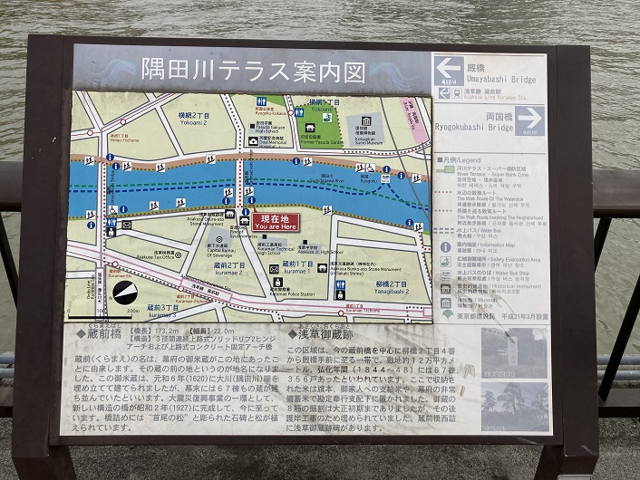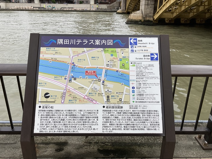 蔵前橋の手前の橋の袂に9番目の隅田川テラス周辺案内図があります。