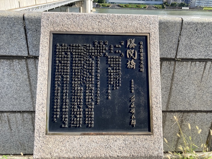 勝鬨橋の袂に石原晋太郎元都知事の署名入り石碑が置かれています。東京市の時代の建造なので、何故に石原元知事の署名が必要だったのか分かりません。