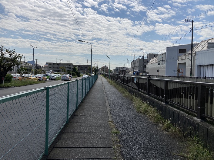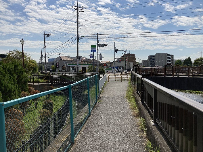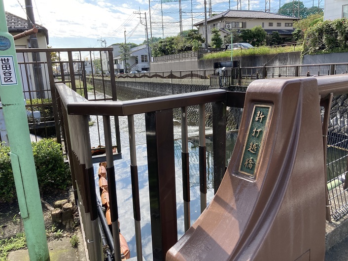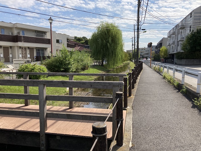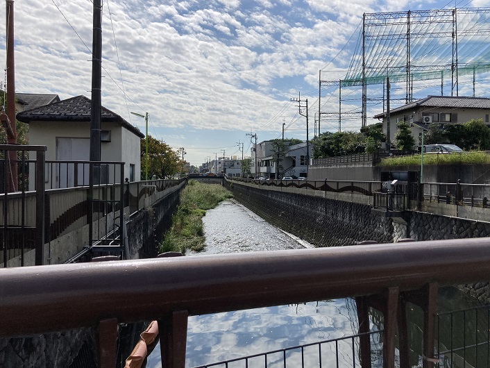 仙川には新打越橋が架かっています。仙川は下流に向って流れていますが、丸子川はここから暗渠になって仙川と平行して流れています。丸子川が明確に認識できる場所はこの橋のところです。