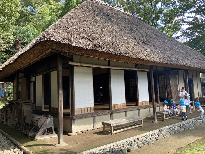 ついでなので、民家園に立ち寄ってみました。よく手入れされた茅葺きの母屋には立ち入りませんでしたが、障子張りの内廊下は昔懐かしいものがあります。