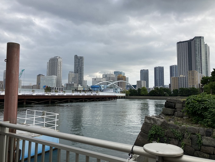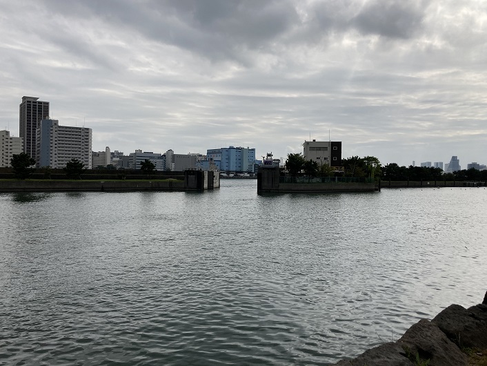 浜離宮庭園の突端にやってきました。私は築地川の河口が直接隅田川に注ぎ込んでいるだろうと思っていたのですが、そうではなく、一旦隅田川と仕切りで分けられたところに注ぎ、最終的には隅田川水門から隅田川に合流しているのです。水門までは行けませんので、浜離宮庭園の東側の突端を築地川本流の終点とします。距離は大したことはなかったのですが、見所が多くあり面白かったです。