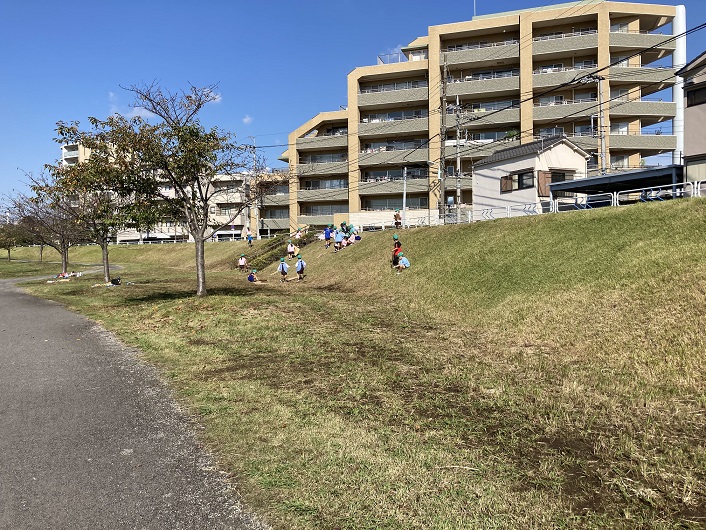 旧中川は流れが殆どないので、大物がいるかどうか分かりませんが釣りにはもってこいです。特にハゼ釣りのメッカとも言われています。他にもシーバスとか鯉・鮒・鯰などの淡水魚もいるそうです。食べられるかどうかは分かりませんが。土手には芝が植えてあるのですが、傾斜が緩やかなので幼稚園児の園外活動には最適です(芝生には悪いかもしれませんが)。