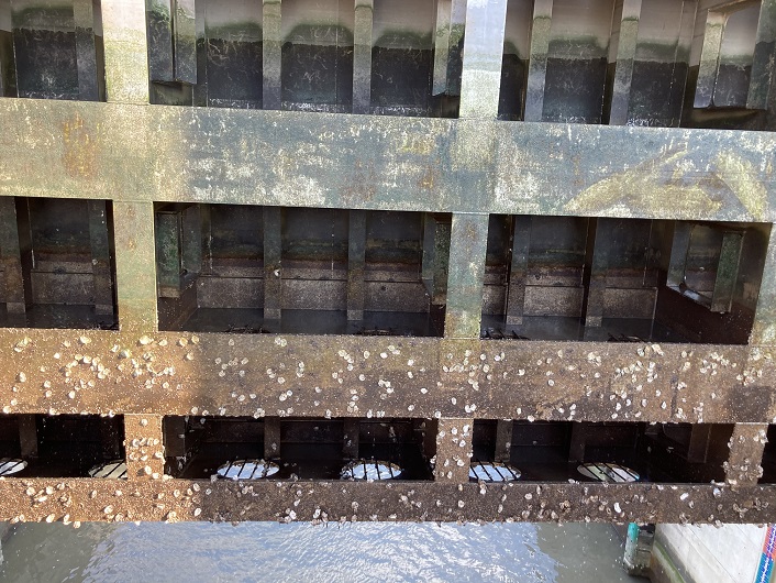 - 震災時、閘門内をいち早く船舶が通過できるよう、日本最速のゲート開閉速度となっています。