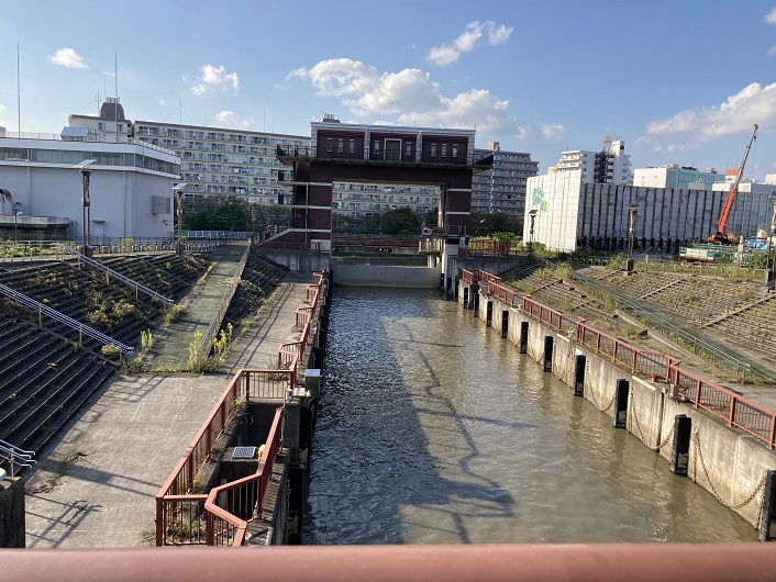 旧中川は荒川に合流する手前で荒川ロックゲートによって仕切られています。かなり大きな船も通すことができますので、施設も大がかりです。