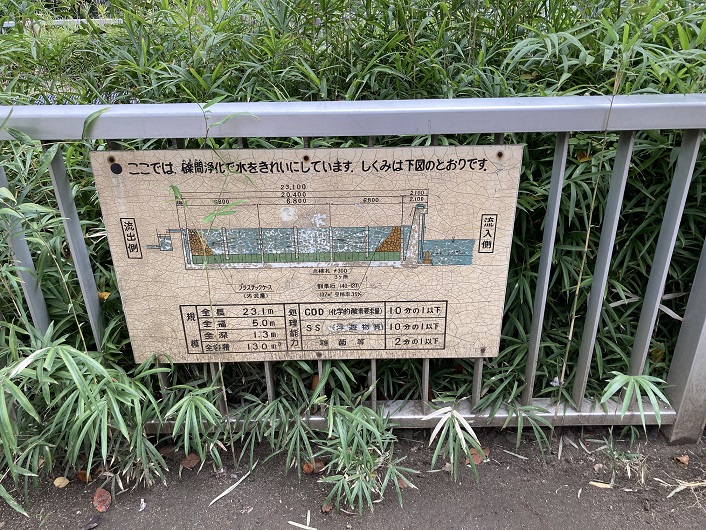 水路の水は礫間接触酸化方式により浄化されているそうです。